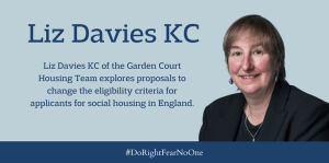 Liz Davies KC is a barrister at Garden Court Chambers, specialising in housing law and in particular law on allocation of social housing and homelessness law. She is the co-author of Housing Allocation and Homelessness: Law and Practice (Luba, Davies, Johnston & Buchanan, LexisNexis, 2022, 6th edition). This blog was published by Garden Court Chambers as part of its Social Welfare update at Social Welfare Updates | Garden Court Chambers | Leading Barristers located in London, UK